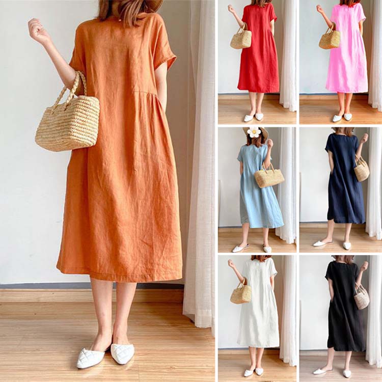 【M-4XL】🌈Jednokolorowa bawełniana sukienka lniana