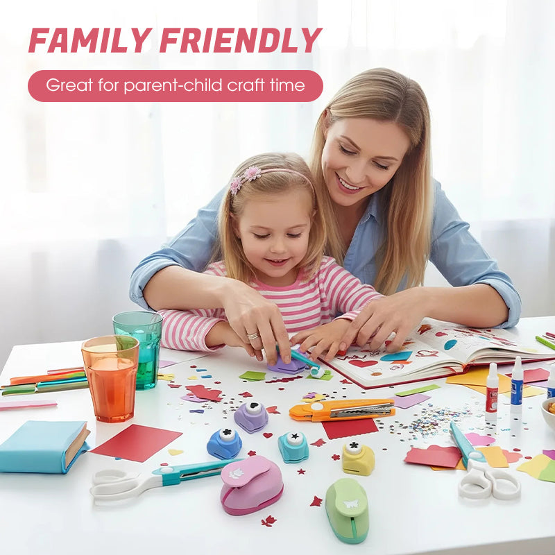 Żywe kolory i uporządkowane przechowywanie- Narzędzia mają jasne odcienie różu, niebieskiego, żółtego i zielonego, co sprawia, że są atrakcyjne dla dzieci, a jednocześnie odpowiednie dla nastolatków i dorosłych. Wszystkie narzędzia można schludnie przechowywać w kompaktowym etui, dzięki czemu dziurkacze i nożyczki są uporządkowane i łatwe do przenoszenia. Niezależnie od tego, czy chodzi o spotkania rzemieślnicze, warsztaty czy inne okazje, można je łatwo przenosić bez obawy o zgubienie części.