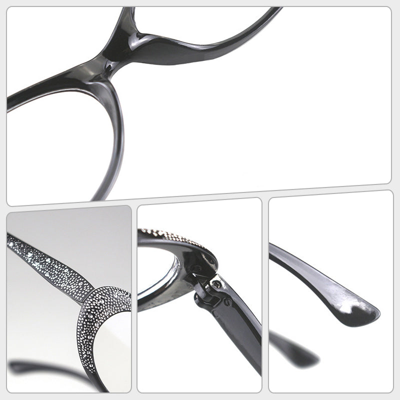 MODNY WZÓR KOCICH OCZU: Eleganckie oprawki w kształcie kocich oczu ozdobione są kryształkami, dzięki czemu okulary te dodadzą blasku Twojemu wyglądowi, zapewniając jednocześnie niezbędną ochronę oczu podczas pracy lub czytania.