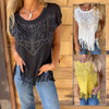 Modny design: Technologia tłoczenia na gorąco dodaje blasku i elegancji tej damskiej koszulce z krótkim rękawem w jednolitym kolorze, odpowiedniej na codzienne i półformalne okazje. Wzór z frędzlami u dołu dodaje zabawnego i stylowego akcentu, podkreślając ogólną estetykę koszulki.