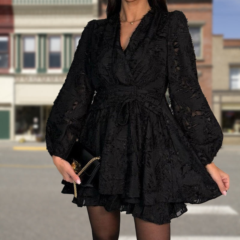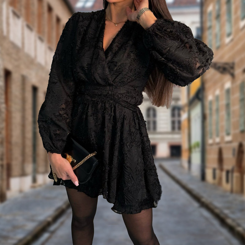 ELEGANT DEEP V-NECK & LONG SLEEVES: De diepe V-hals voegt verfijning toe, terwijl de lange mouwen zorgen voor bedekking en elegantie, perfect voor koeler weer of formele bijeenkomsten.
