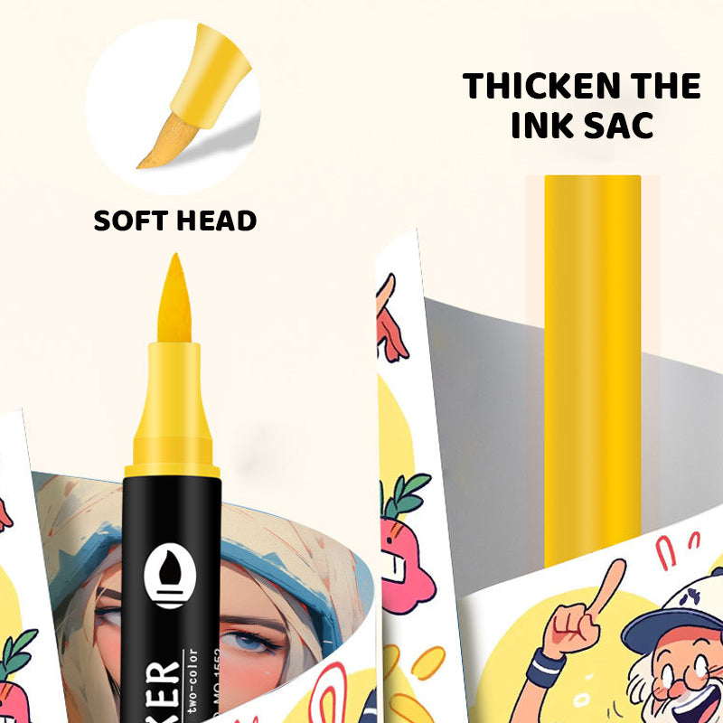 Uwolnij kreatywną wszechstronność dzięki dwukolorowym wkładom - Zwiększ swoją artystyczną ekspresję dzięki zestawowi dwukolorowych ołówków akwarelowych z podwójną końcówką, oferując niezrównaną wszechstronność przy każdym pociągnięciu. Każde pióro akwarelowe ma dwa różne kolory wkładów: jeden wkład dla głównego koloru, a drugi pasujący do głównego koloru.