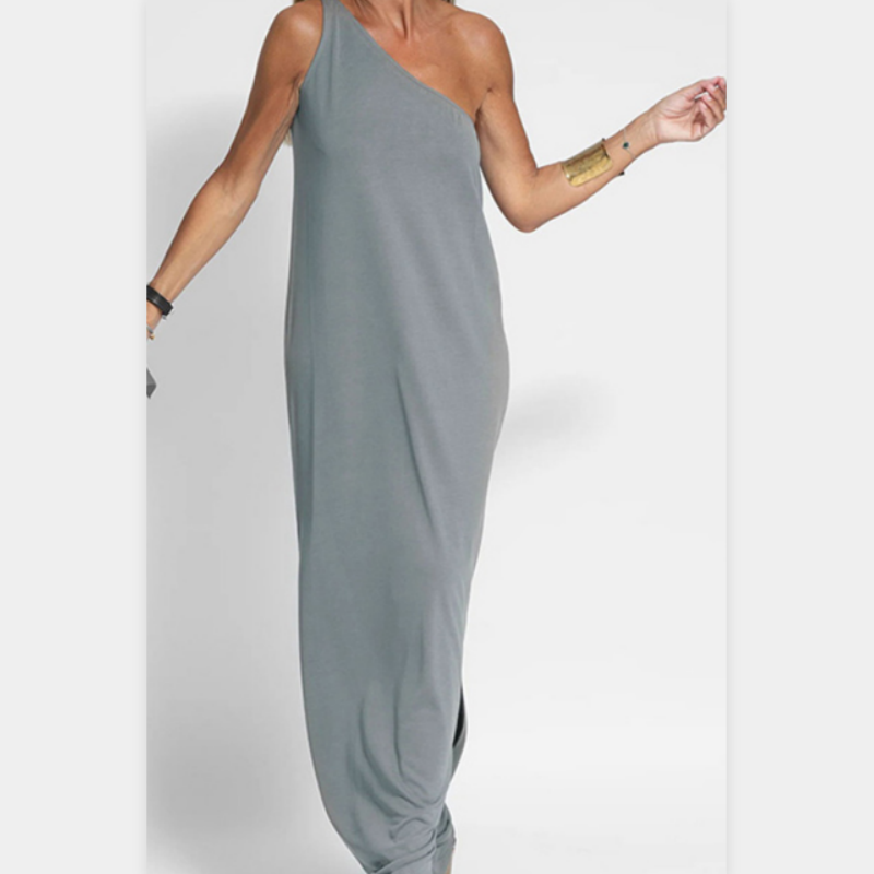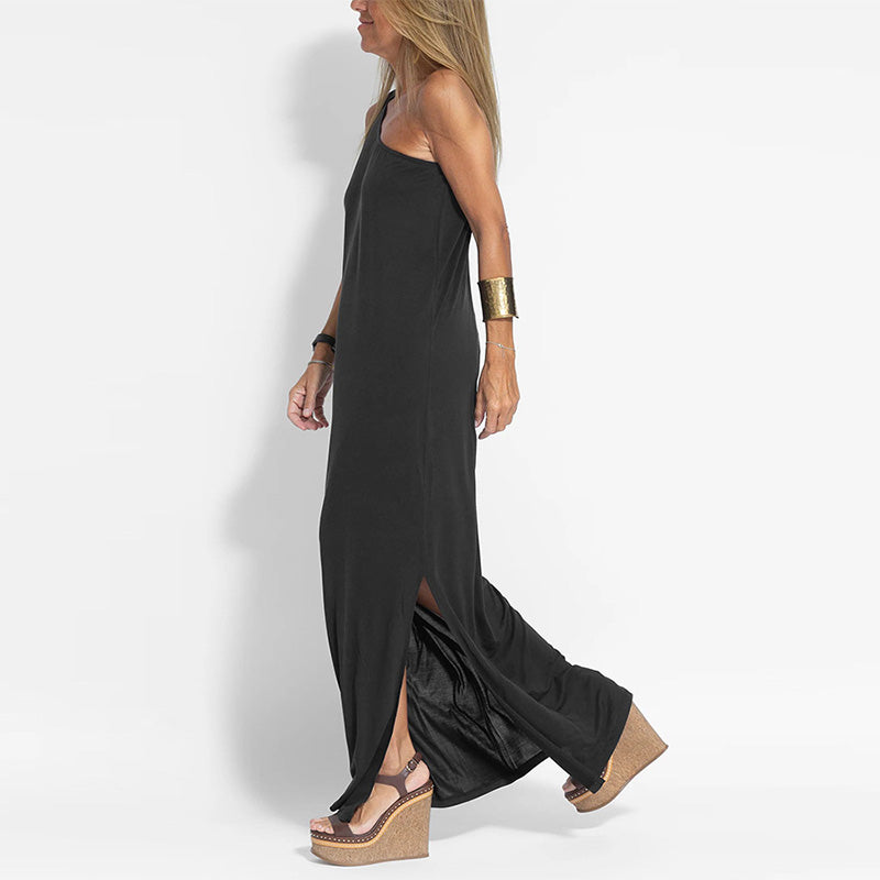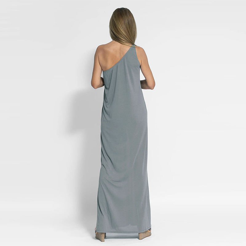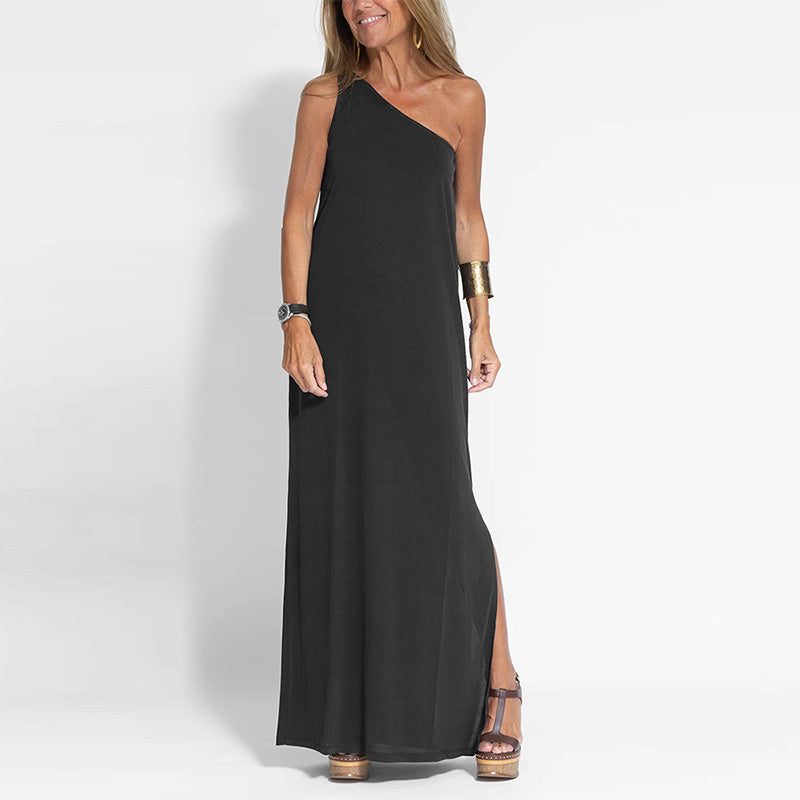 Package Includes: 1* Elegant One-Shoulder Slit Ankle-Length Dress