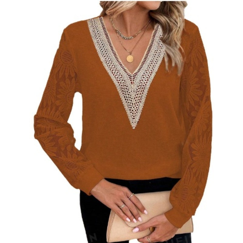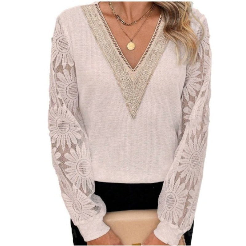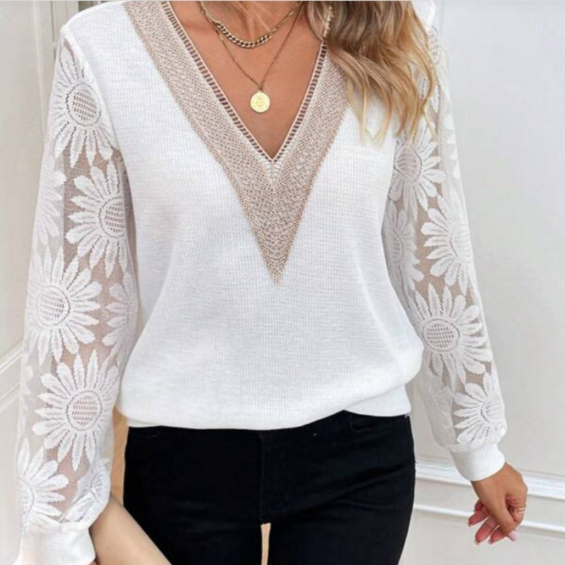 Zawartość opakowania: 1 x Elegancka bluzka z kwiatowym wzorem, koronkowymi rękawami i dekoltem w szpic