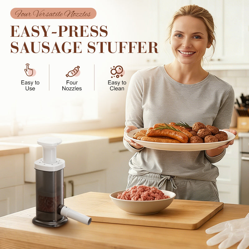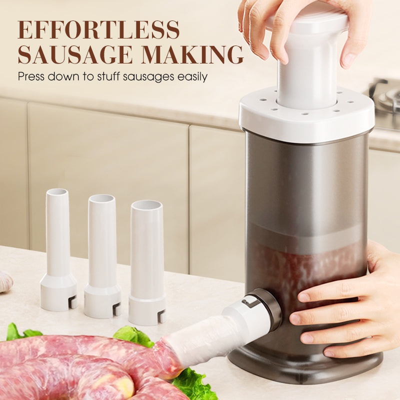 Konstrukcja Easy Press: Ciesz się robieniem kiełbasek jednym naciśnięciem. Ergonomiczny mechanizm tłokowy wymaga niewielkiej siły i może być płynnie obsługiwany jedną ręką, oszczędzając czas i energię w kuchni.