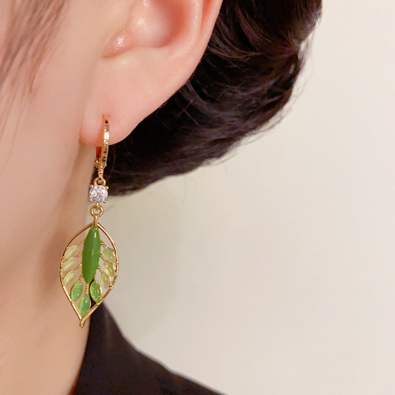 Delikatny wzór w kształcie liścia- Te kolczyki mają kształt liścia, który prezentuje bogate warstwy i trójwymiarowe efekty. Każdy szczegół odzwierciedla wykwintne rzemiosło, dzięki czemu kolczyki są prawdziwym dziełem sztuki do noszenia.
