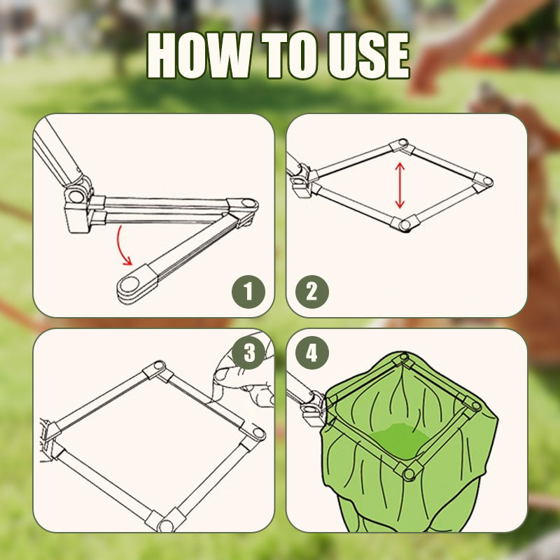 kompaktowa, składana konstrukcja: Ten składany zgarniacz kupy dla zwierząt został zaprojektowany z myślą o optymalnej przenośności. Jego kompaktowa konstrukcja składa się do mniejszego rozmiaru, dzięki czemu można go łatwo przenosić w torbie lub samochodzie w celu sprzątania w podróży.