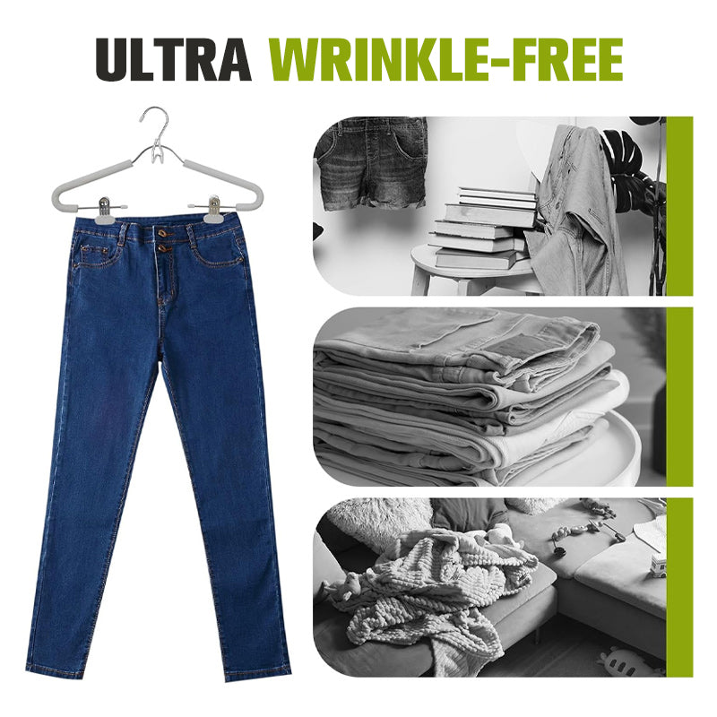 Wielofunkcyjne klipsy- Każdy wieszak wyposażony jest w dwa klipsy, które idealnie przytrzymują spódnice, spodnie, szorty lub dodatki, zapewniając stabilne mocowanie bez uszkadzania odzieży.