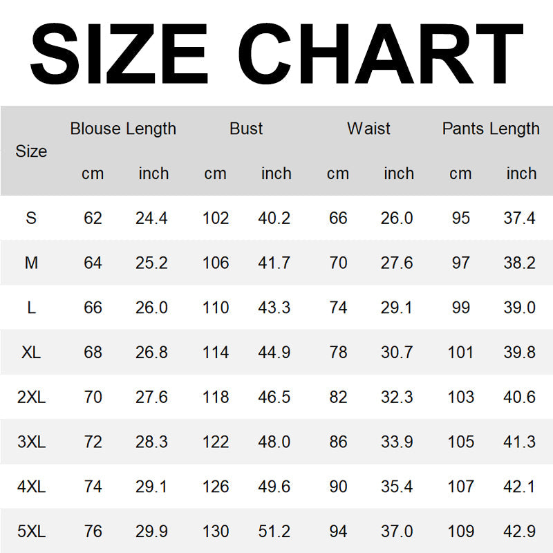 👗Tabela rozmiarów – Zestaw damski (bluzka + spodnie)