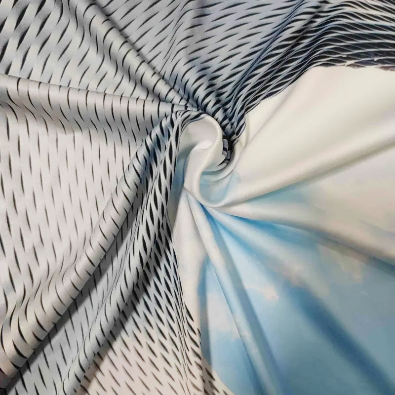 Nadruk optyczny 3D- Dzięki efektownym geometrycznym wzorom tuneli w połączeniu z realistycznymi krajobrazami nieba, ten wzór tworzy hipnotyzujący “efekt przezroczystości”. Ta wyjątkowa kreacja z pewnością będzie przedmiotem rozmów i pomoże Ci wyróżnić się z tłumu.