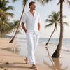 Oddychający i wygodny materiał : Ten zestaw jest wykonany z wysokiej jakości mieszanki lnu, która zapewnia chłód i wygodę w ciepłe dni. Lekka i oddychająca tkanina odprowadza wilgoć, dzięki czemu idealnie nadaje się na letnie dni poza domem lub w domu.