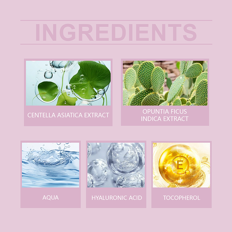 Składniki: ekstrakt z Centella Asiatica, ekstrakt z kaktusa, kwas hialuronowy, tokoferol (witamina E), woda