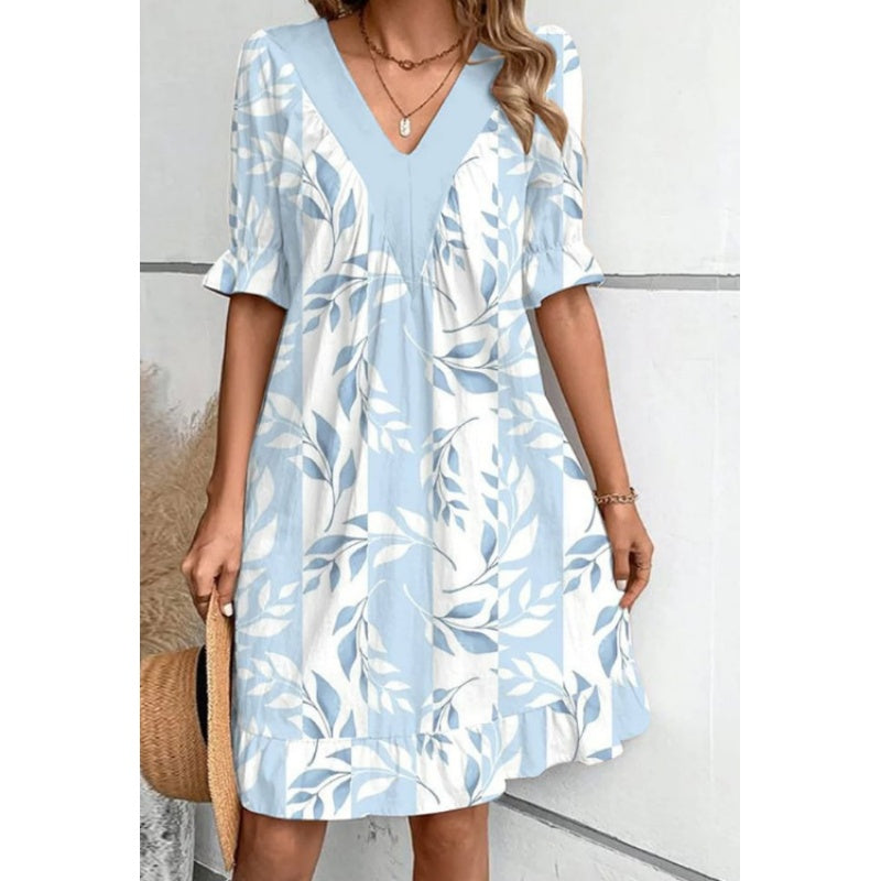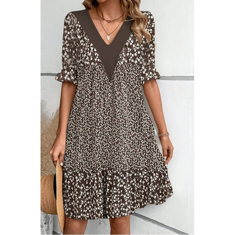 Falbany na krótkich rękawach: Figlarne falbany na krótkich rękawach i u dołu podkreślają kobiecość i szyk, dodając sukience ruchu i blasku.