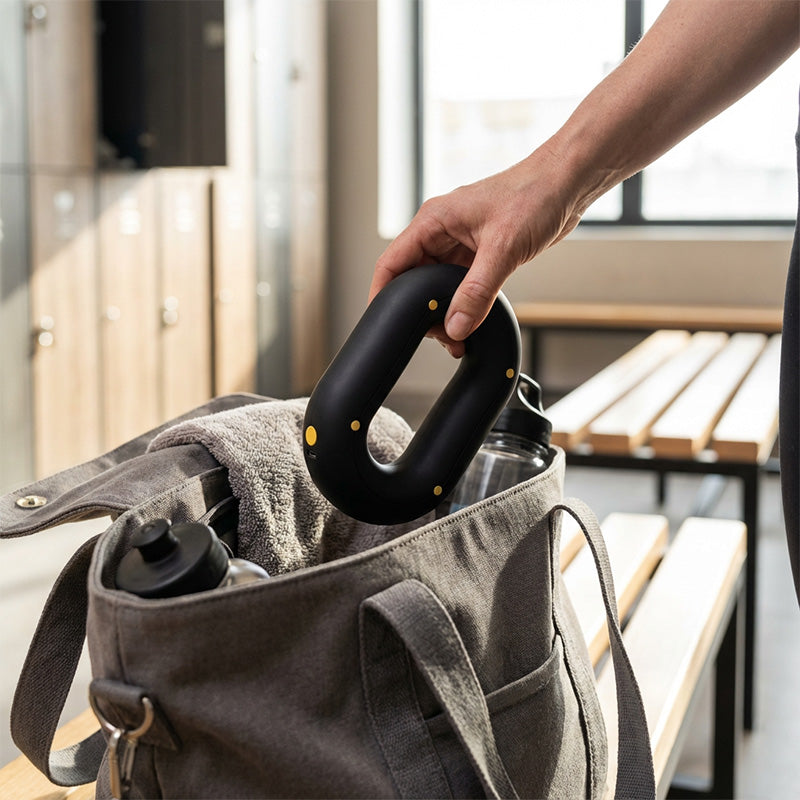Ergonomiczna, wielofunkcyjna konstrukcja- Elastyczny kontur w kształcie pierścienia idealnie dopasowuje się do naturalnych krzywizn dłoni, zapewniając wygodę i łatwość obsługi. W połączeniu z paskiem przekształca się w tryb pełnego wsparcia. Wykonany z wytrzymałego tworzywa ABS, stanowi praktyczny wybór do regeneracji po treningu i codziennego łagodzenia stresu.