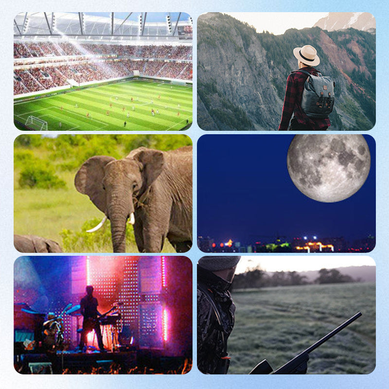 Krystalicznie czyste powiększenie dla wszystkich odkrywców - do wyboru powiększenie 8x21, 10x25 lub 30x25. Szerokopasmowy obiektyw z zieloną powłoką zapewnia rozdzielczość 5,77s, aby wyostrzyć szczegóły lasów, gór lub stadionów. Uchwyć żywe kolory i tekstury nawet przy słabym oświetleniu - odkrywając tajemnice natury.