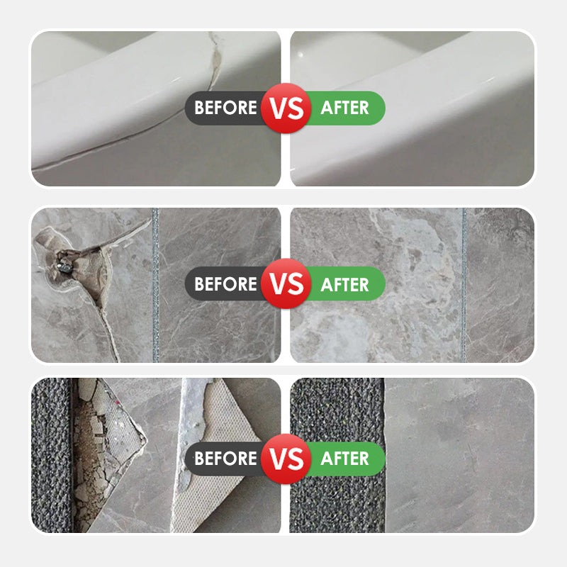 Silny klej- Po utwardzeniu tworzy wyjątkowo mocne i trwałe połączenie o właściwościach wodoodpornych, odpornych na plamy i pleśń, dzięki czemu nadaje się szczególnie do stosowania w pomieszczeniach o wysokiej wilgotności, takich jak kuchnie i łazienki. Nie musisz już martwić się o odpryskiwanie lub blaknięcie napraw z upływem czasu.