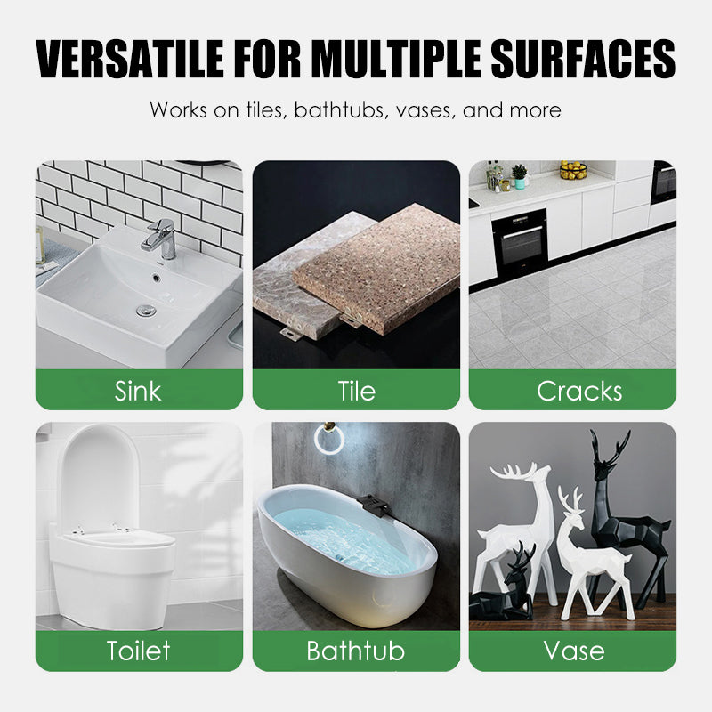 Uniwersalny zestaw naprawczy- Pęknięte płytki? Uszkodzona wanna? Stłuczony wazon? Ten zestaw naprawczy poradzi sobie ze wszystkim. Nadaje się do ceramiki, porcelany i innych materiałów, stanowiąc kompleksowe rozwiązanie do napraw domowych. Nie wyrzucaj zepsutych przedmiotów – napraw je w prosty sposób, oszczędzając pieniądze i unikając kłopotów.
