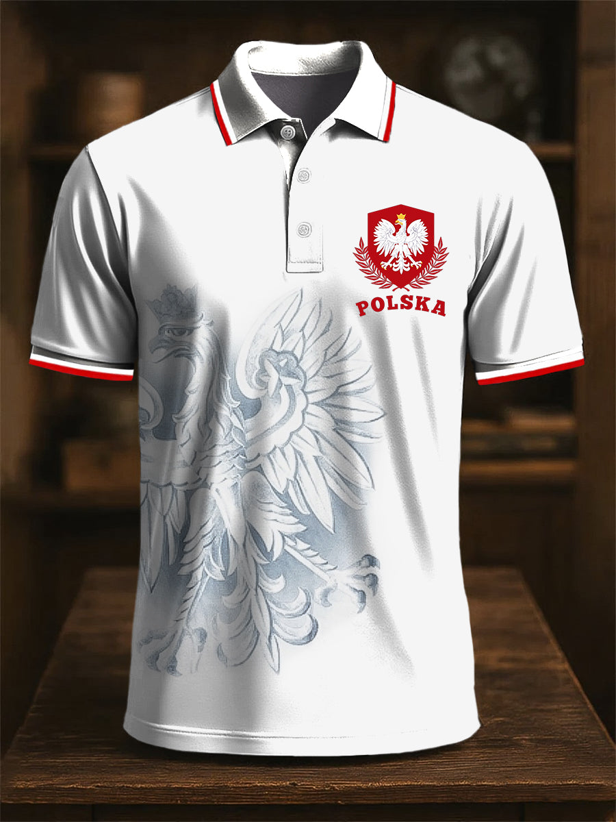 Retro Polski Godło Orła Abstrakcyjny Patchwork Art Print Casual Biznesowa Koszulka Polo