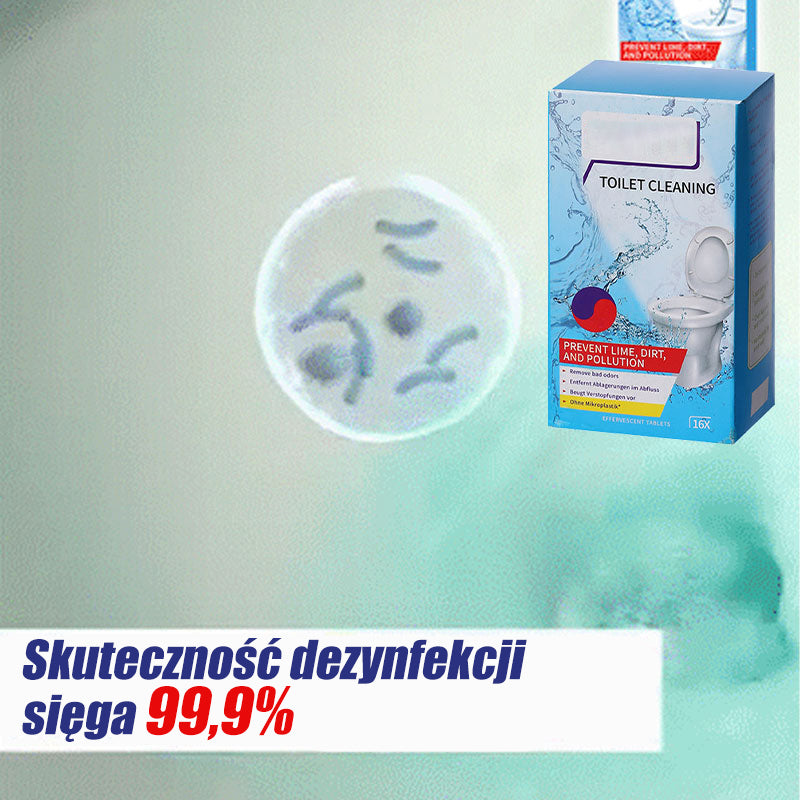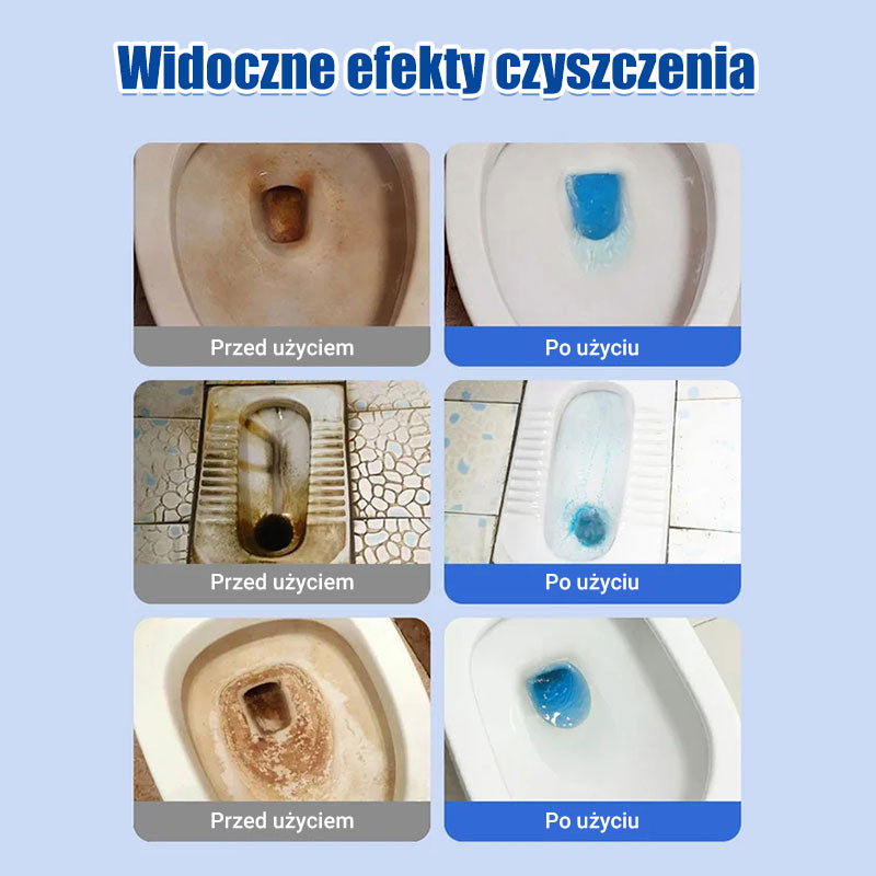 Łatwe czyszczenie- Musujące tabletki szybko się rozpuszczają, skutecznie czyszcząc toaletę podczas rutynowej konserwacji. Rdza i osady są usuwane bez szorowania. Uporczywe plamy mogą wymagać dokładnego szorowania.