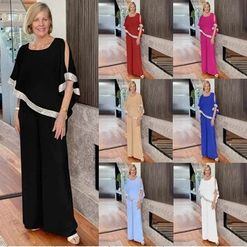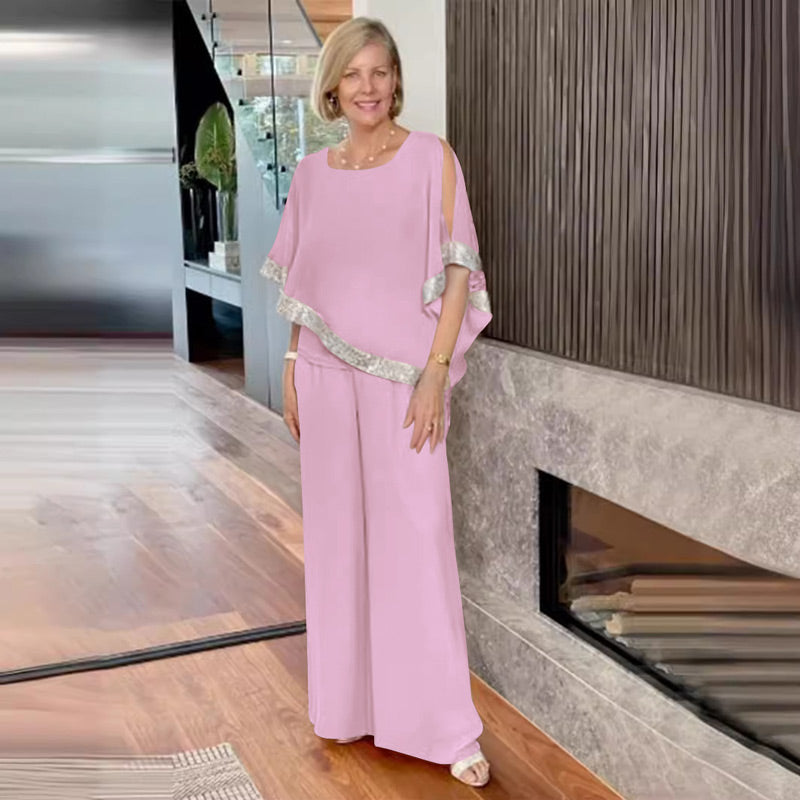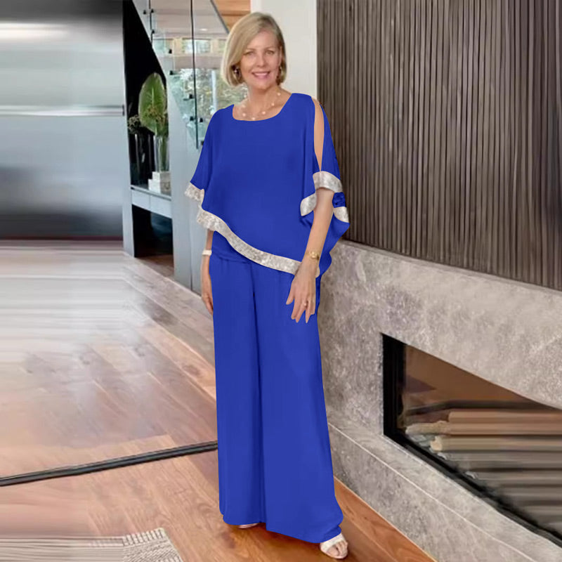 1* Elegancki 2-częściowy zestaw damski: Cekinowy top i spodnie z szerokimi nogawkami