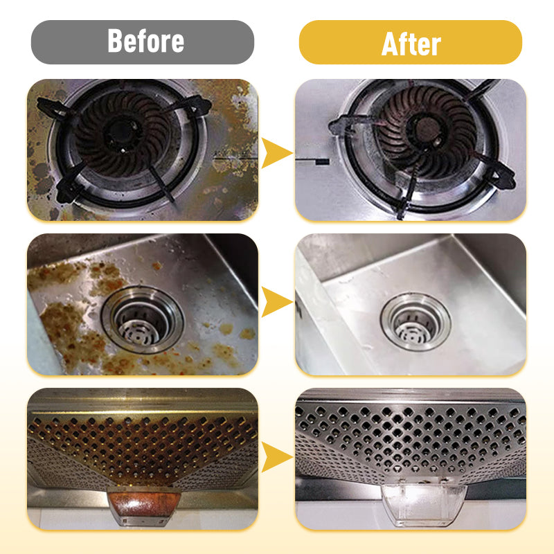 Mistrz w usuwaniu tłuszczu z kuchni: Ten silny spray, zaprojektowany specjalnie do usuwania najbardziej uporczywego tłuszczu, bez wysiłku usuwa trudne zabrudzenia i osady z okapów kuchennych, płyt grzewczych i zlewozmywaków bez konieczności szorowania lub demontażu.