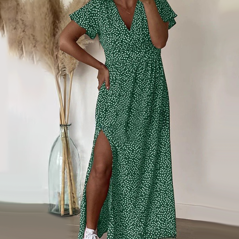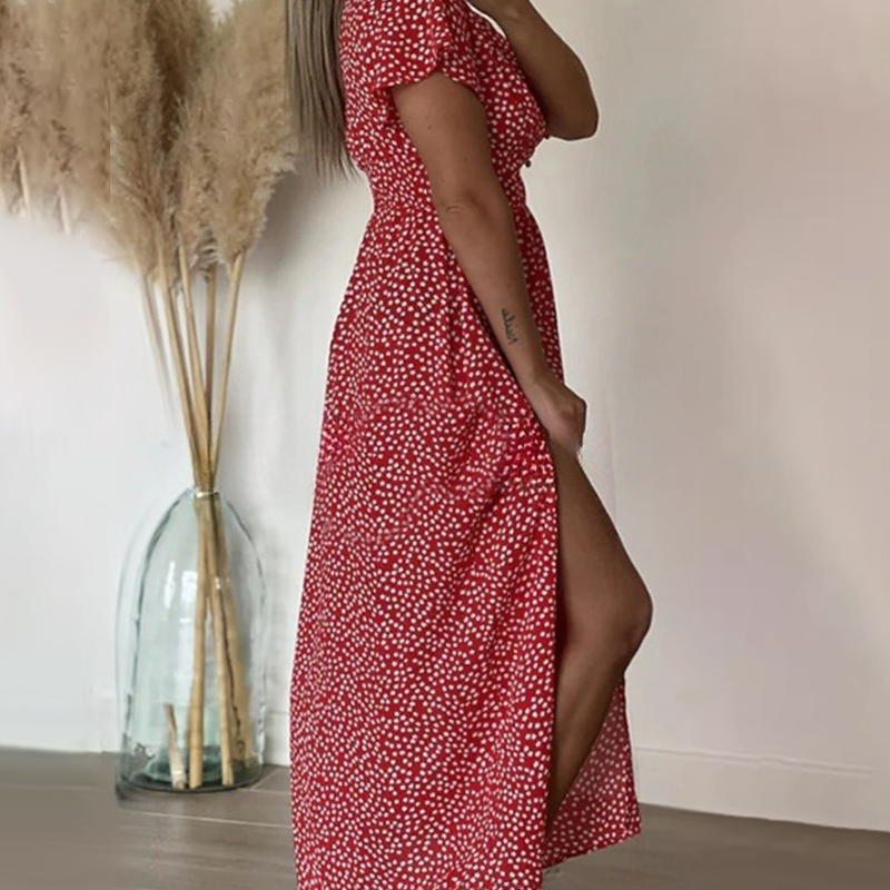 Pakiet zawiera: 1 * Seksowna damska sukienka maxi z nadrukiem i bocznym rozcięciem