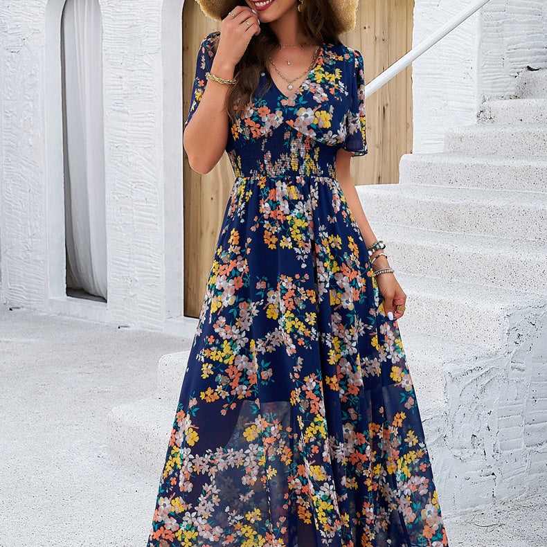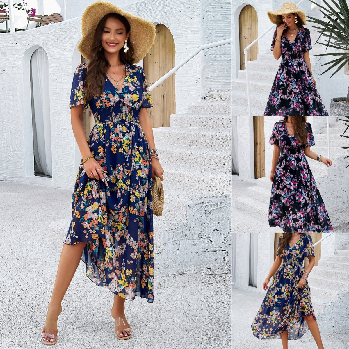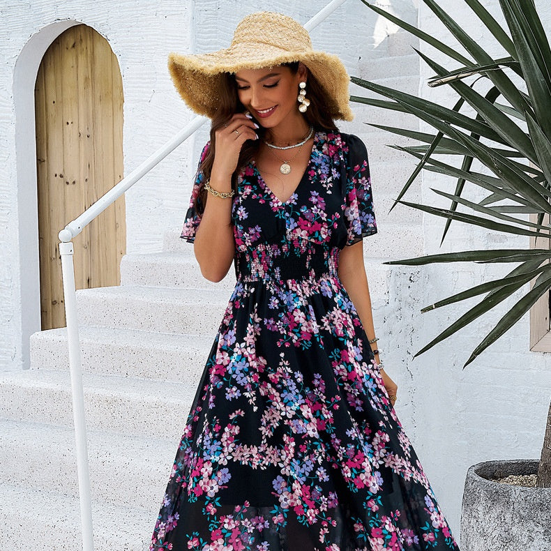 Zawartość opakowania: 1* Damska sukienka casualowa z dekoltem w serek i kwiatowym nadrukiem