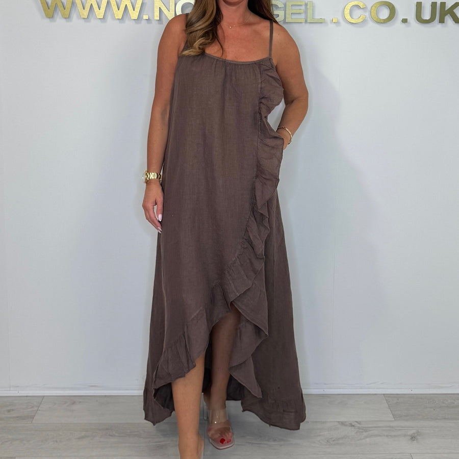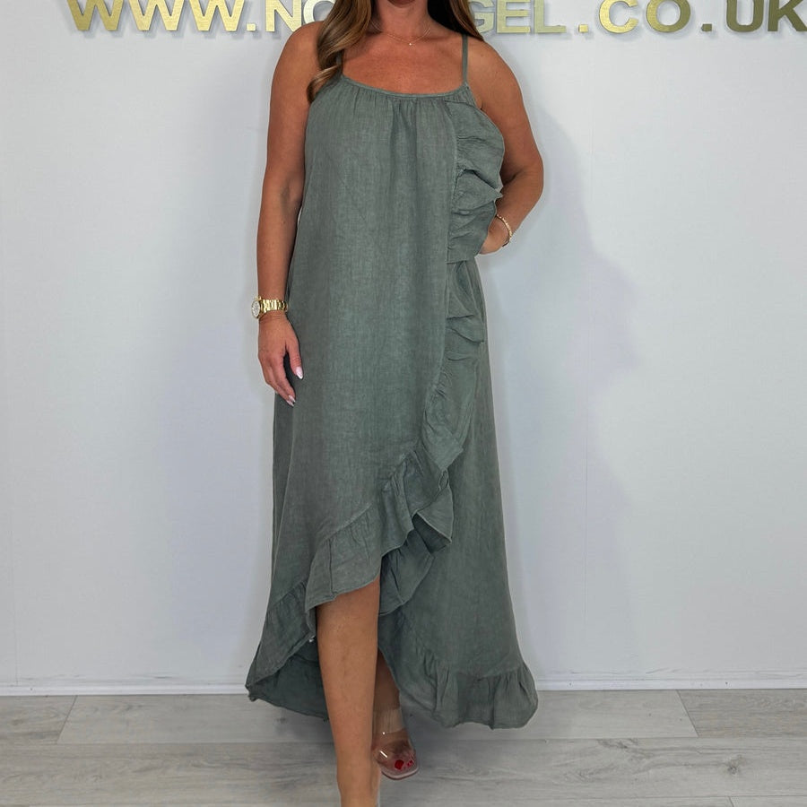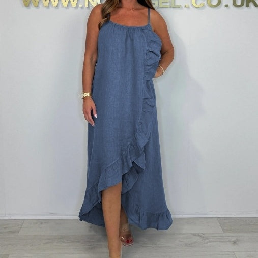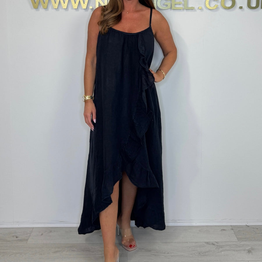 Пакетът включва: 1* Дамска рокля със спагети каишка и асиметричен подгъв