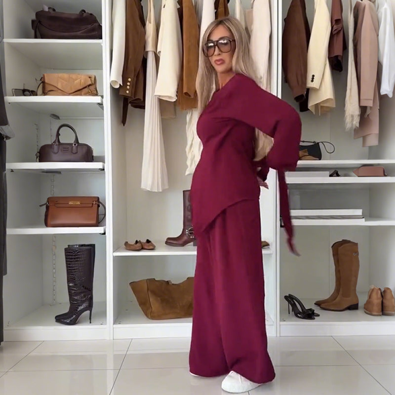 Modny i uniwersalny design - Ten elegancki zestaw damskiej bluzki z długim rękawem i spodni idealnie pasuje do współczesnej kobiety. Łączy w sobie modę i wygodę, dzięki czemu jest idealnym wyborem zarówno do pracy, jak i na co dzień. To uniwersalny element garderoby, który pasuje do wszystkiego.