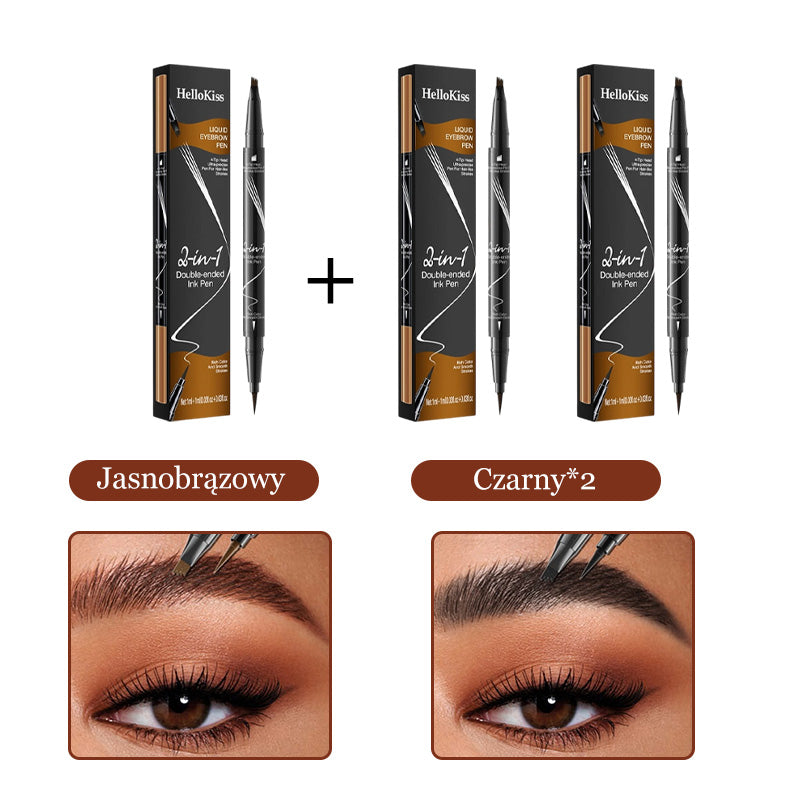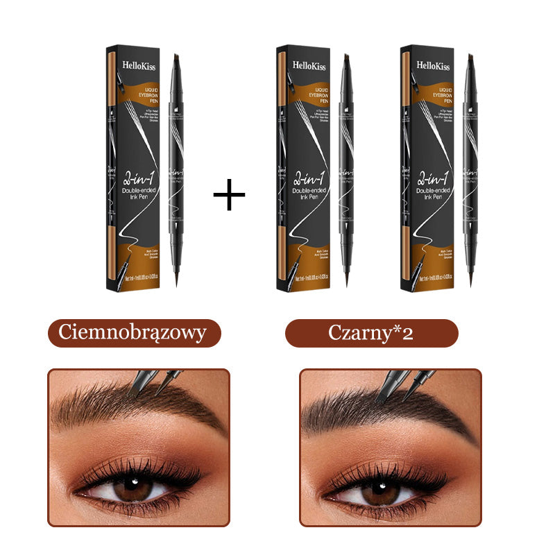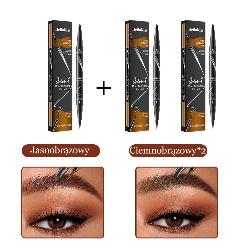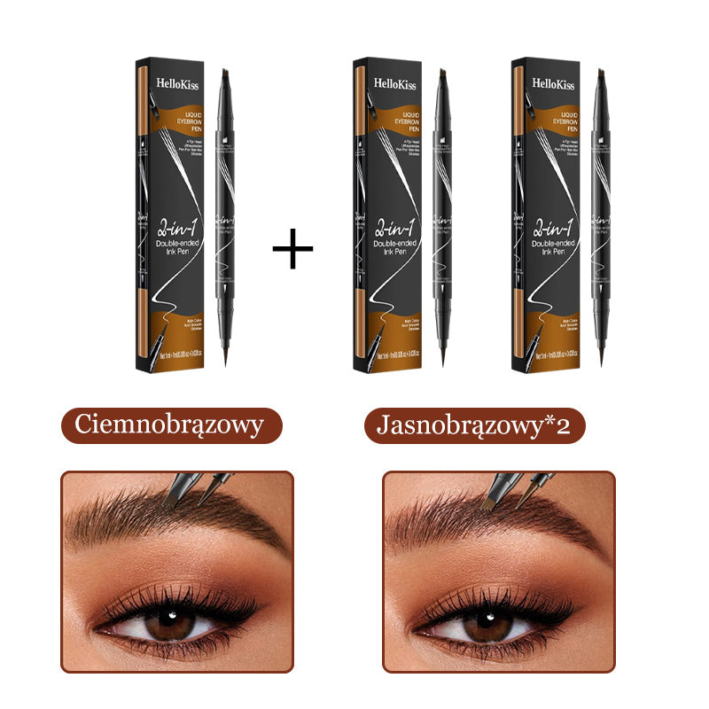 Opakowanie zawiera: Wodoodporny, długotrwały pisak do brwi 2 w 1