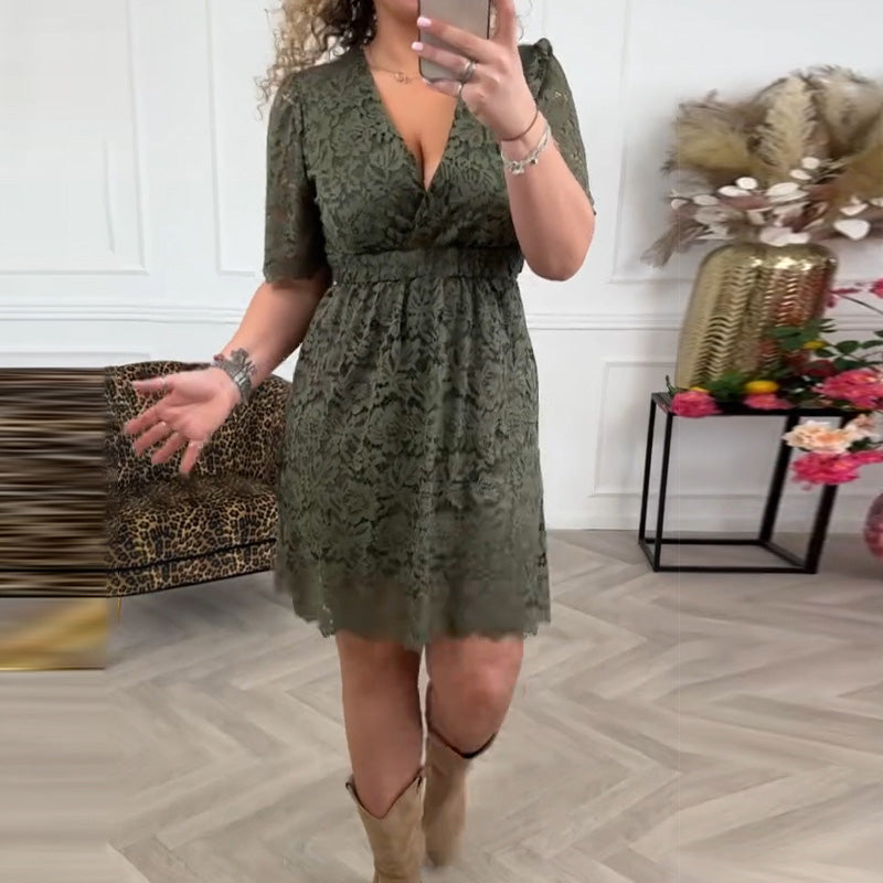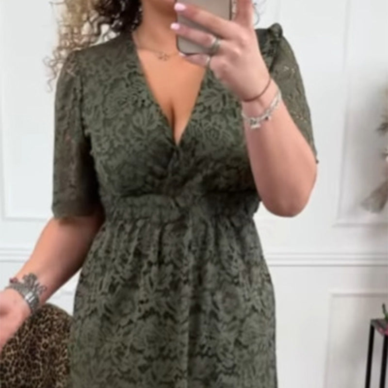 Opakowanie zawiera 1* Eleganckie koronkowe sukienki damskie z dekoltem w szpic