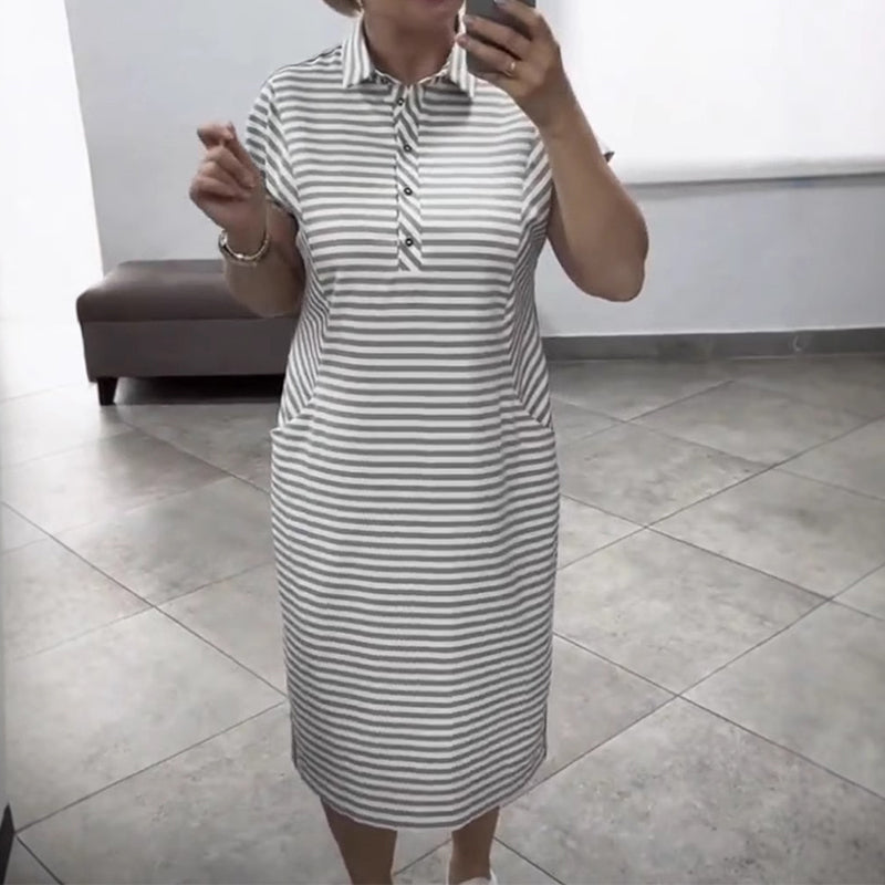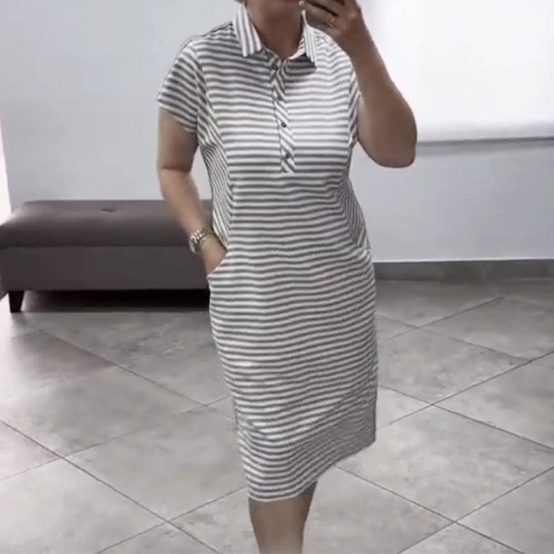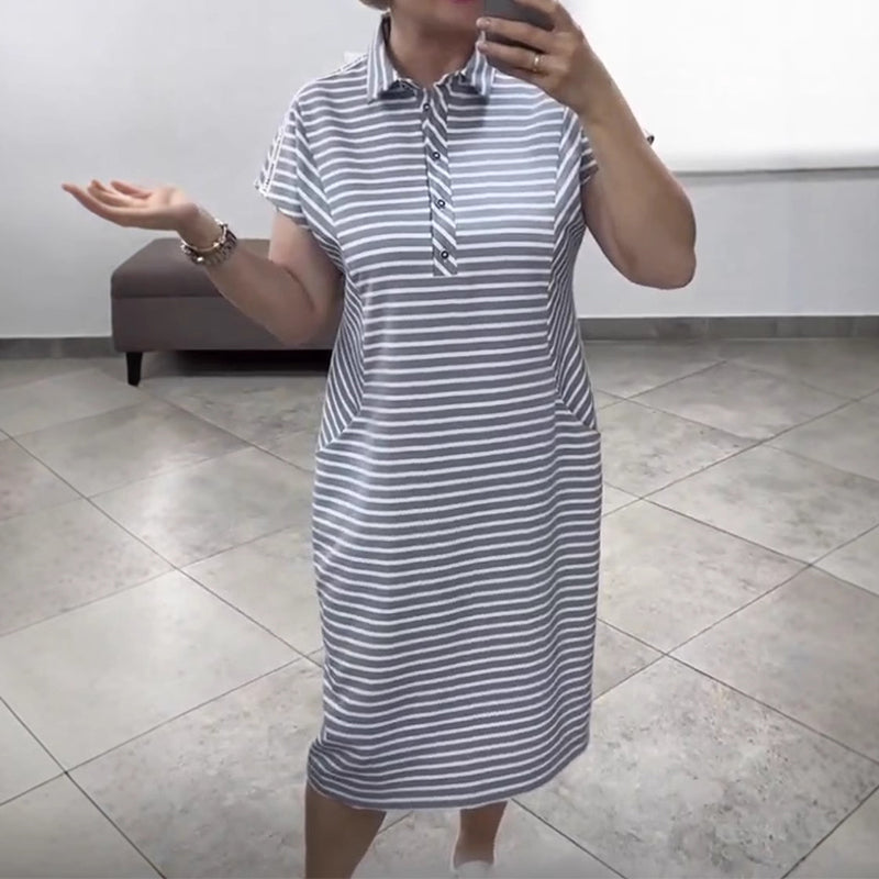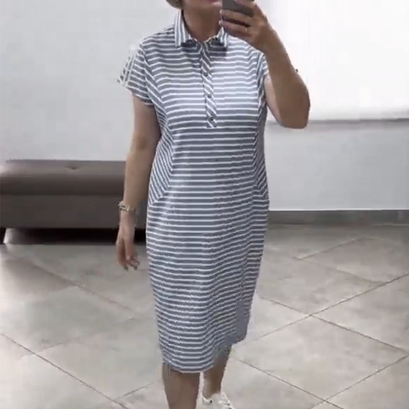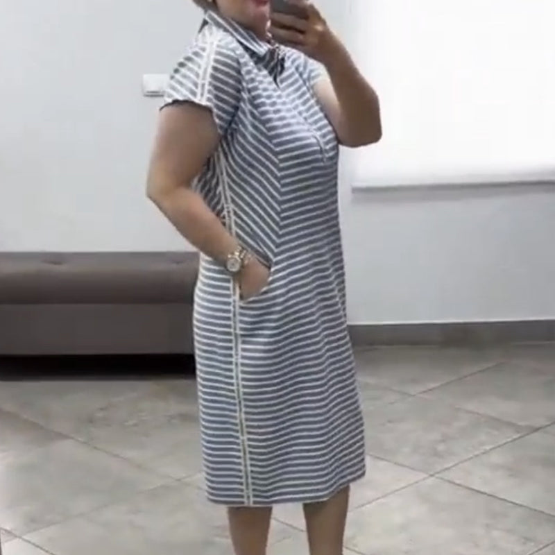 Zawartość opakowania: 1× Damska casualowa sukienka w paski z krótkim rękawem