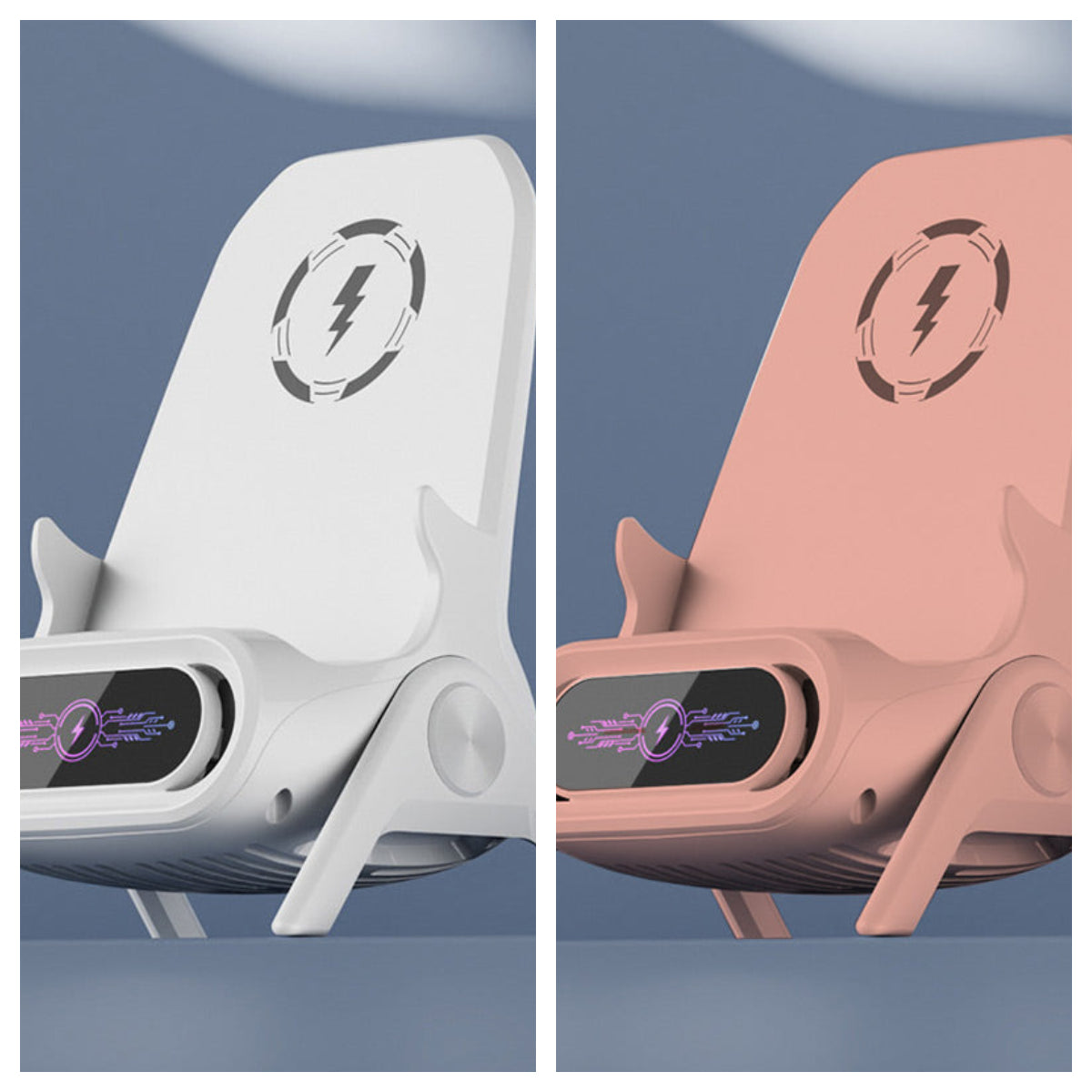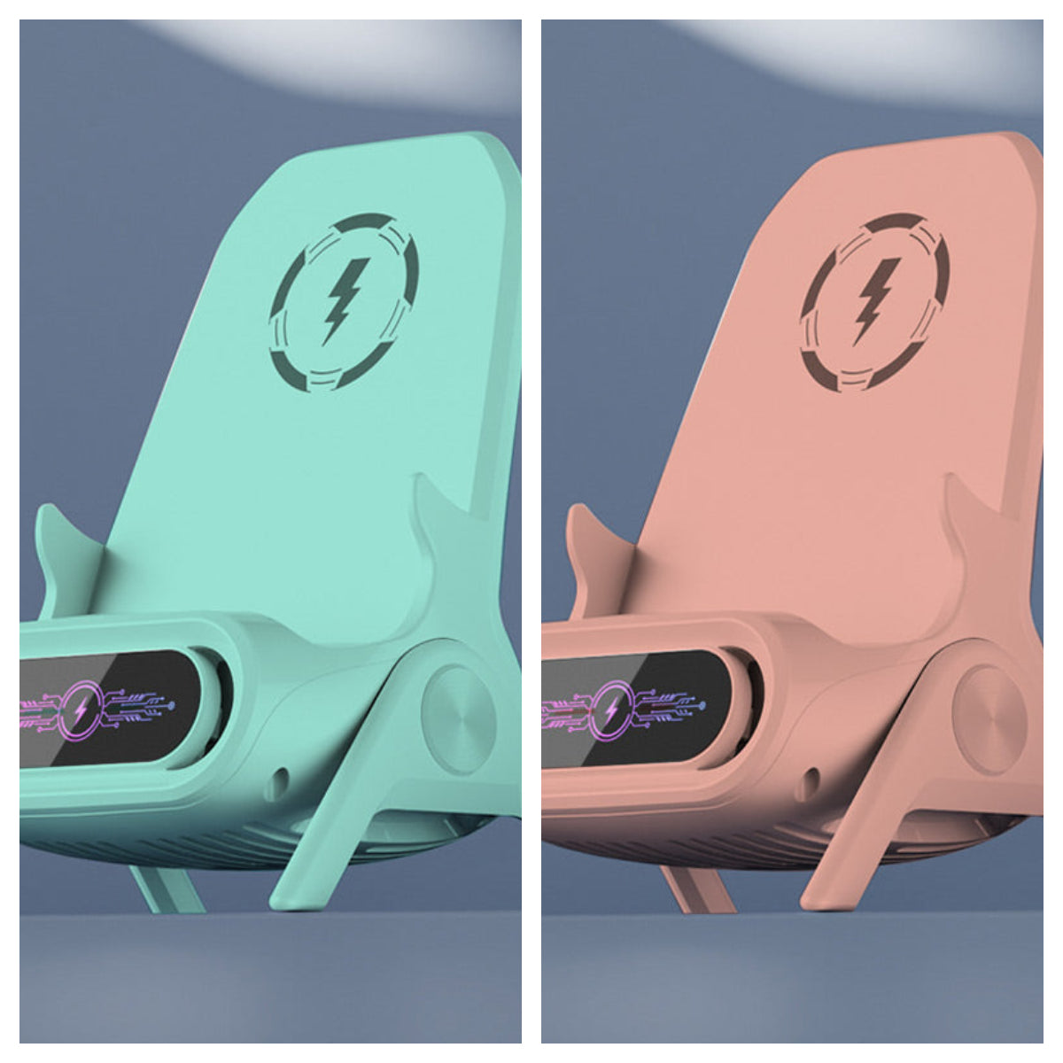 KREATYWNY PROJEKT - Dzięki unikalnej stylistyce krzesła, ta bezprzewodowa ładowarka obsługuje zarówno pozycję poziomą, jak i pionową jako stojak na telefon.
